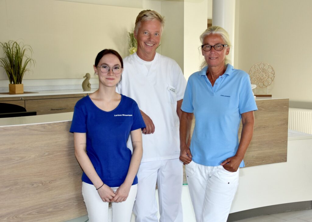 Unser Team Maren Behme, Jannien Trebbin, Dr. Harald Hoppe und Amy Stoll Stephanie Meinking, Jacqueline Krohm und Dr. Ute Siebert Larissa Wesemann, Dr. Björn Silberhorn und Anke Lindeken Verwaltung: Katja Heins, Edith Uhlmann, Brigitte Kruse